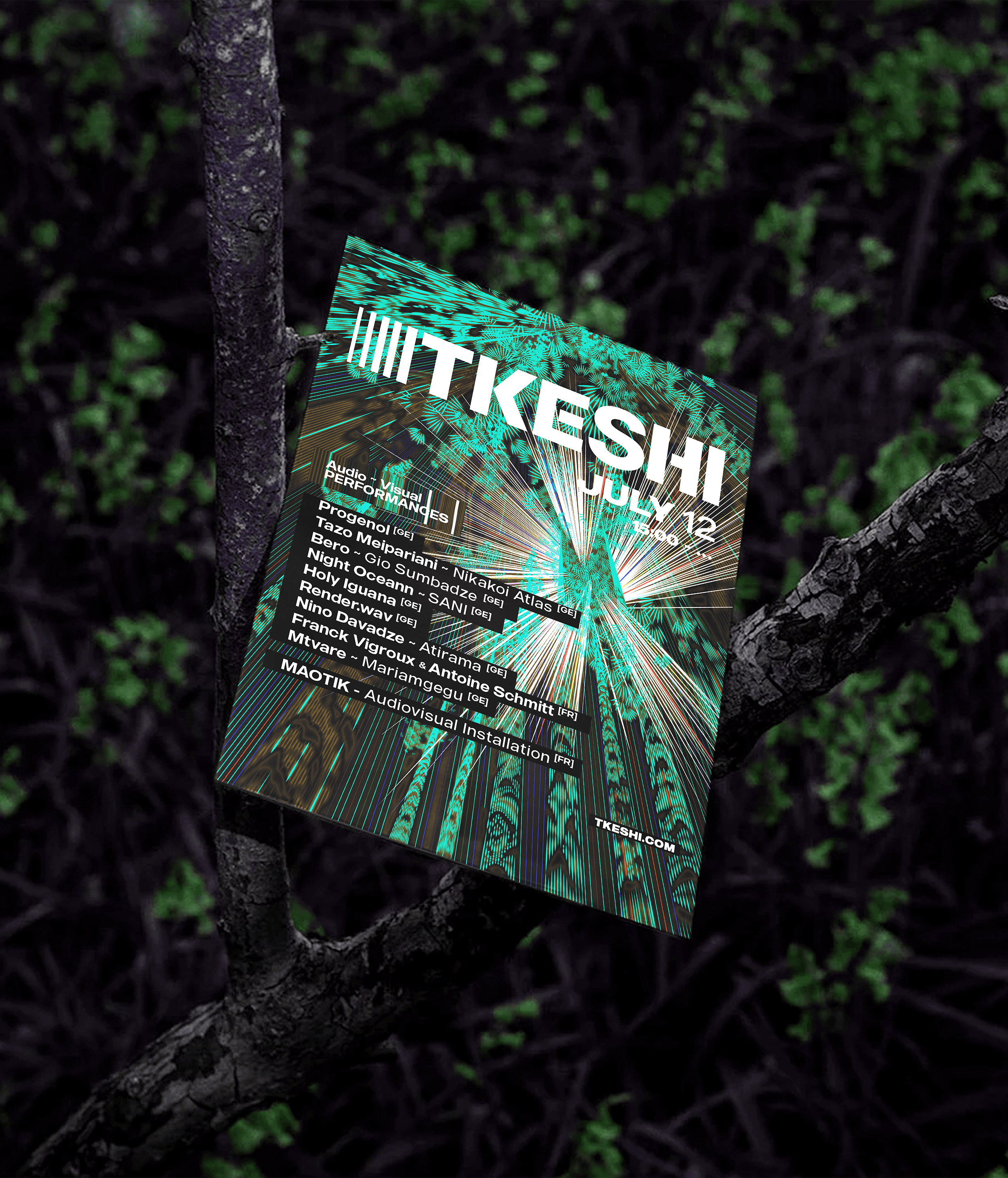 TKESHI began in 2020 as an event series. Since then, they have managed to establish a full-scale new media art and diverse music festival at a unique location, at the pine forest near Kojori, just outside Tbilisi. Over the years, TKESHI has hosted around 70 Georgian and international artists, presenting audiovisual performances, installations, and a variety of public activities.